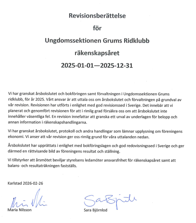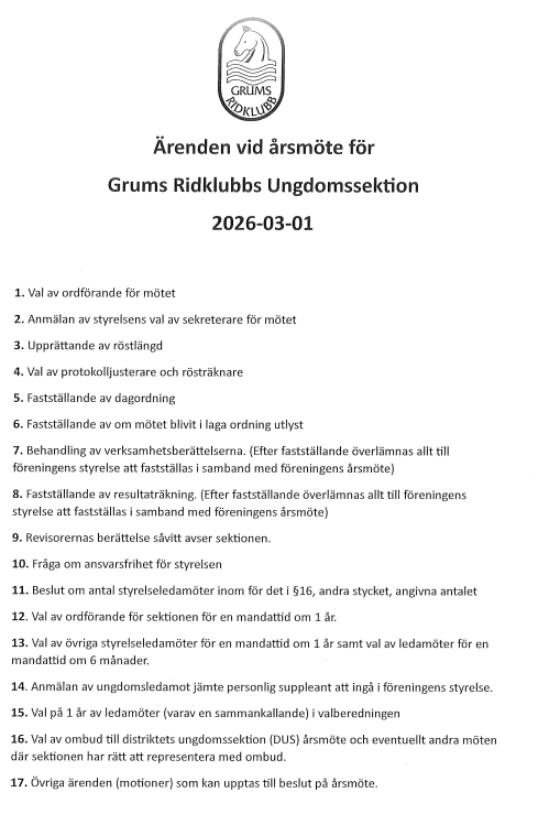 Välkomna på vårt årsmöte 2026-03-01 På cafeterian Grums Ridklubb!!
